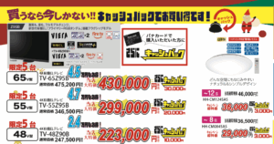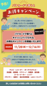 今回パナカード会員様限定でキャッシュバック対象商品が多数ございます。新製品はもちろん、展示品を含めた在庫限りのお買い得品も多数ございますので是非、皆様お揃いでお越しください。